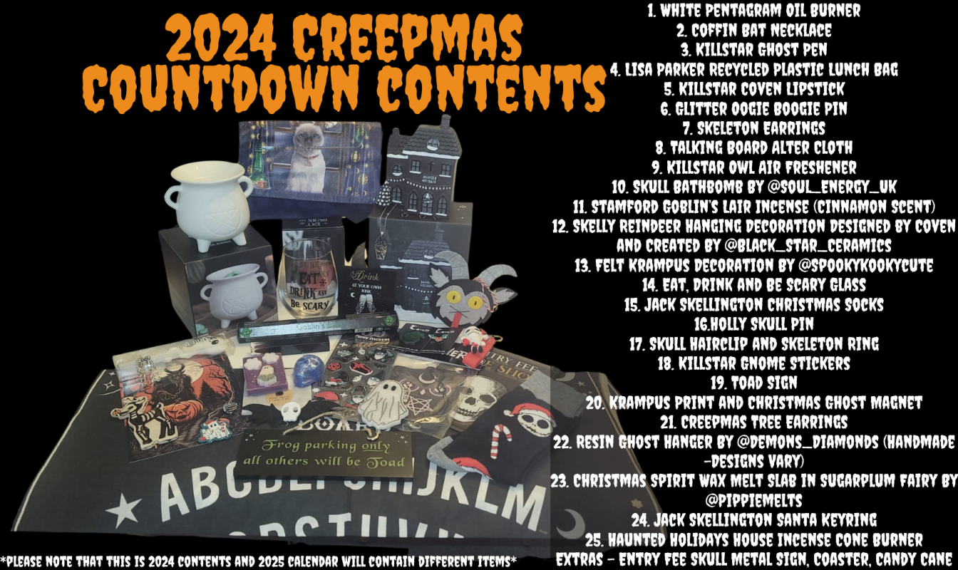 25 hand-picked spooky treats for your Christmas countdown from Dec 1-25th. Each one is wrapped and numbered for a daily surprise.