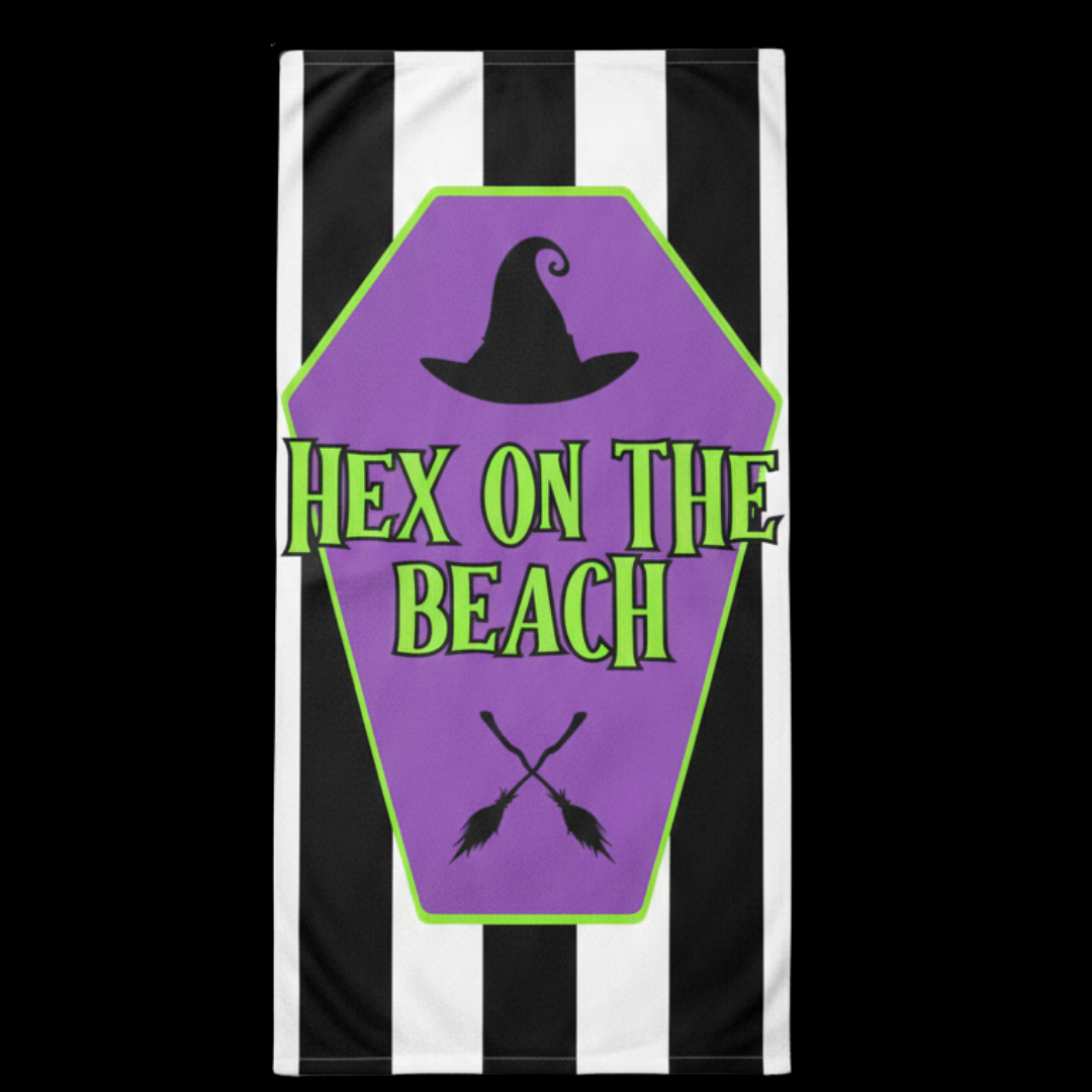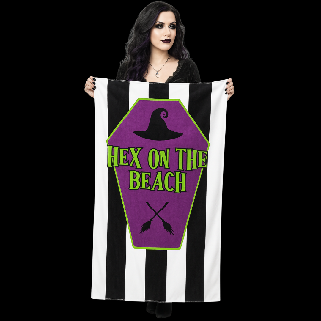 Coven-exclusive Hex on the Beach towel with bold gothic design — limited archive piece.